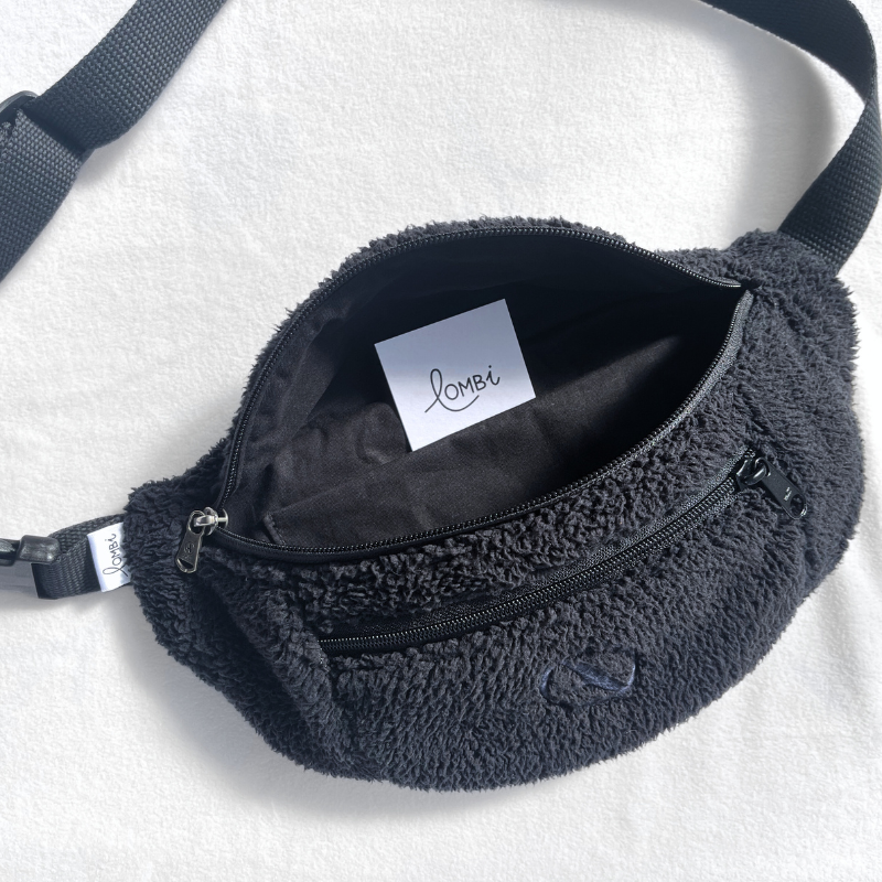 La sangle est ajustable et dotée d'une boucle à clip pour détacher facilement la banane. La doublure est en coton noir.