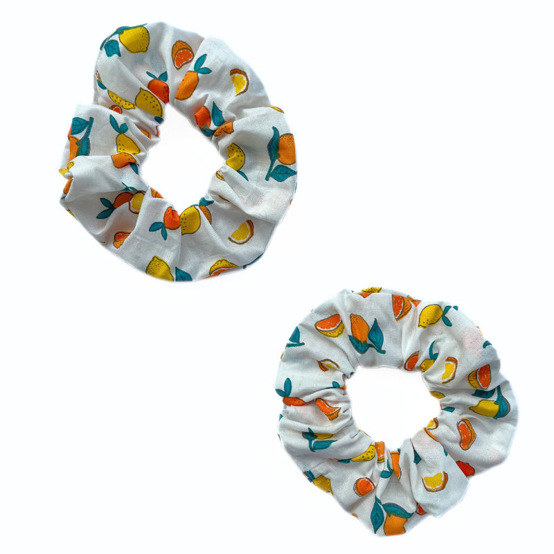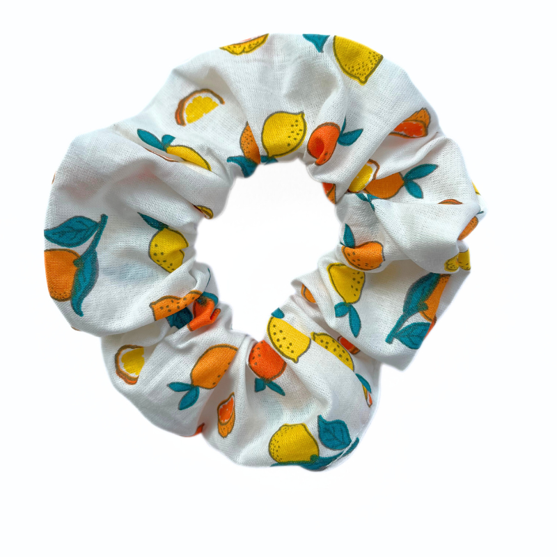 Maxi chouchou en coton blanc avec motifs agrumes