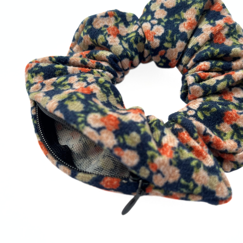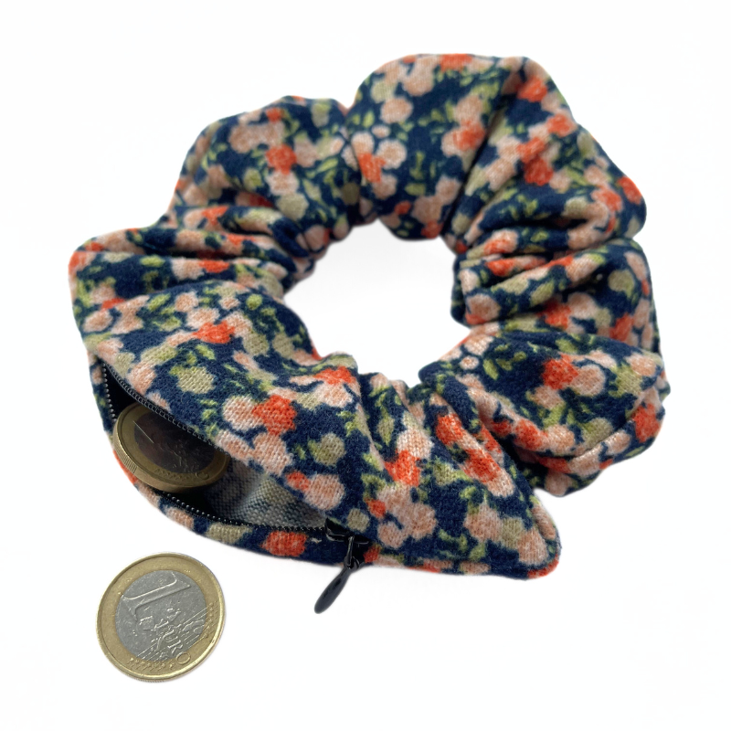 Chouchou magique à fleurs en jersey tout doux qui contient une petite poche secrète avec fermeture invisible